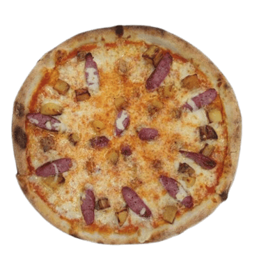Tomate, Mozzarella fior di latte, Prosciutto Cotto, Champiñón, Alcachofa, Aceituna Negra
